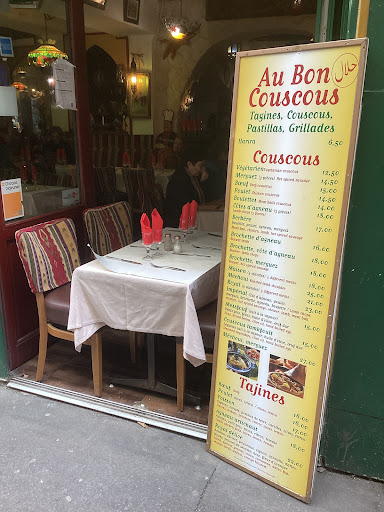 Au Bon Couscous del Barrio Latino (Quartier Latín), en París, es un excelente lugar para disfrutar platillos maghrebinos como el couscous o el tajine. Tienen una gran variedad de couscous con carnero, costilla de carnero, pollo, merguez (salchicha maghrebina) con buenos precios por la calidad y cantidad que se ofrece. Además, los encargados son muy atentos y siempre lo reciben a uno con una copa de kir como aperitivo y una tasa de té a la menta al final. Mi favorito es el couscous con carnero y merguez acompañado con un buen vino gris de Belaouane (Marruecos).