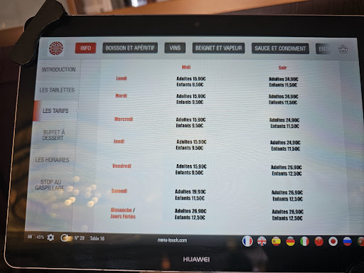 Fantastic!! An all-you-can-eat restaurant, but instead of a buffet with items that sometimes sit for ages in self-service trays, here you order what you want directly on the touchscreen tablet available at each table, throughout your meal (you just have to wait a minimum of 5 minutes between orders), and they bring your orders directly to your table! The only buffet where you have to serve yourself is the dessert buffet (cold items). Honestly, it's a brilliant concept!! And on top of that, the food is absolutely delicious!! It's an hour from our place, but we definitely prefer making the trip considering the quality of what's on offer!!