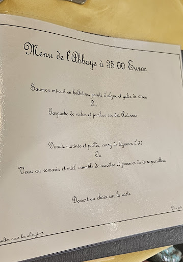 Logis Auberge de l'Abbaye where we spent one night for a wedding, the room was very comfortable from the mattress to the pillows, very spacious as well as the bathroom with a view of the square.