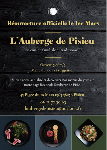 Village restaurant with a menu at €28 on Sundays (Starter, Main Course, Cheese & Dessert); Very good value for money ; family and traditional cuisine. Small inn which is worth the detour to Pisieu and a simple but very friendly welcome.