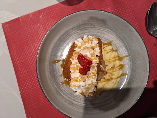 A very nice little restaurant that I have known for years. Always a pleasure to come and enjoy fried carp. And today, for dessert, a caramelized apple tiramisu... a treat.
