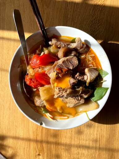 Certainement l’un des meilleurs bo bun que j’ai eu l’occasion de manger.Cependant le service laisse à désirer . Même si le serveur était seul en salle , avec un peu d’attention de sa part aux tables le service aurait été plus fluide . Nous avons attendu plus de 35 minutes le dessert qui ne demandait aucune préparation .