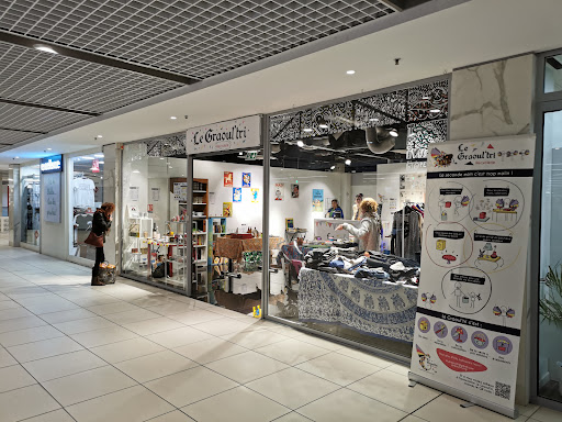 A shopping center with almost half of the shops empty/closed. You can find an Auchan as well as an Action brand on the lowest floor, and for dining there is a waffle bar.