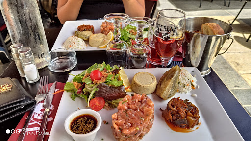 Comió aquí dos veces; bajo el dosel. No había reservado así que llegué temprano. Personal muy amable y servicial. El menú es muy amplio, cosas habituales de francés / Med, además de un montón de giros fusionados en las cosas también. Precios decentes. Suficiente inglés hablado si es necesario.