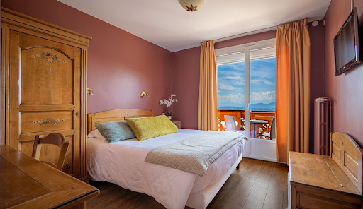 At the foot of the Jura, Bois Joly is remarkable. It dominates the Geneva plain as far as the Alps which face it. This hotel-restaurant has the charm of its atypical history in a majestic building which dominates the Pays de Gex. The experience of the modern rooms with their charming little balconies is wonderful, the new bedding is very appreciated. Once settled in your room, going down to eat at the restaurant is a wonderful moment. The rooms are full and lively with families, groups, couples. The cuisine is varied with iconic and affordable dishes like fondues. Departure the next day marks the promise of returning. I know this Franco-Swiss region by heart and this first experience at Bois Joly is memorable.