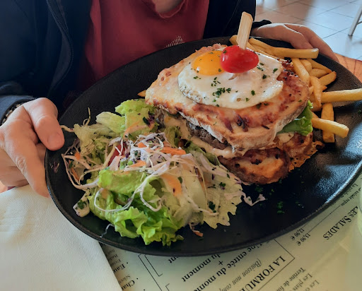 A quick stop at this brasserie. We're not from the area. A nice little aperitif. As a Monbazillac lover, I was delighted to find it served by the glass in a restaurant! We wanted to eat light, so we each stopped for a croque monsieur! The huge plates arrived 🤣. We'll see about eating light later! But nothing to complain about. Very good croques, generous, and well-filled. We settled for coffee for dessert. The welcome was great; the manager greeted us immediately upon our arrival (we were the customers with the Jack Skellington 😉). The young man who served us was also very pleasant.