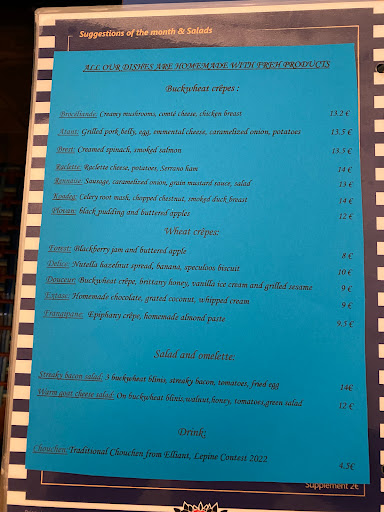 Stavamo cercando una creperia per la cena nei dintorni di Montmartre e ci siamo imbattuti in questo locale. Il ristorante si presenta accogliente e tranquillo, nonostante le diverse persone presenti. Abbiamo finalmente ordinato le classiche crêpe francesi al grano saraceno. Abbiamo assaggiato una classica prosciutto, formaggio e uovo, e una vegetariana con uovo e verdure di stagione. Entrambe ottime, un servizio veloce e un buon rapporto qualità prezzo. Unica nota negativa, abbiamo provato il sidro del giorno, essendo presente una vasta selezione, ma a noi non ha fatto impazzire, almeno quello che abbiamo ordinato.