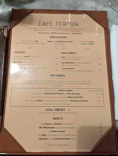 A deux pas de la place Bellecour, dans l'angle d'une rue discrete, un bel etablissement assez haut de gamme qui propose une belle cuisine lyonnaise. Excellente terrine en entree, sympathique saucisson chaud aux pistaches avant de cloturer par un saint Marcellin. Tres longue carte des vins.