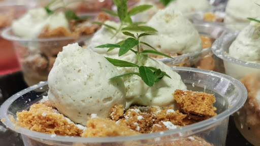 A very pleasant place with a good atmosphere and very friendly people. To share, we ordered a breaded seafood croquette with cuttlefish ink and Chantilly cream over bamboo charcoal and soy sauce; corn velouté with almond milk; popcorn with smoked paprika; fried corn and sunflower seeds; and rice chips (I really enjoyed eating it). Tuna tataki with chimichurri sauce and wasabi mayonnaise; vegetable tian; and roast duck sausage tartlet with shallot compote and potato mousse. For dessert, strawberry tartar with basil, balsamic vinegar, white cheese mousse and pistachio ice cream; and Elena's beautiful pear. Very surprising and fun cuisine. A restaurant to return to and recommend.