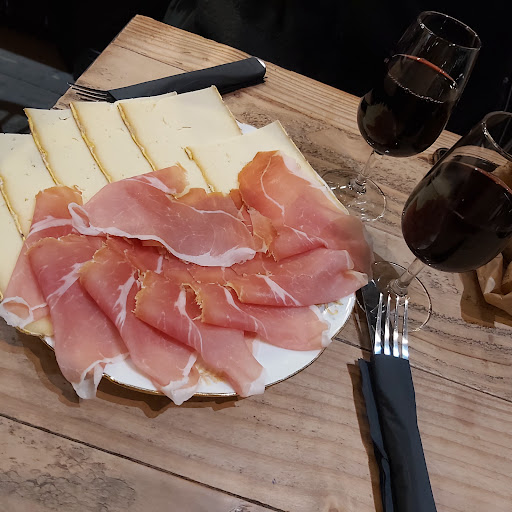 A wine bar rustically furnished, with very good wines and delicious delicacies to eat. The selection goes very well with the wine. Simply tastes good, nice atmosphere.
