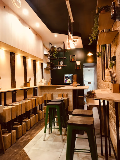 Place with about fifteen seats with side stools and high chairs around a central table, which serves noodles - with or without broth - and dadans of oriental cuisine, very similar to gyoza ravioli. The spiciness can be adjusted in intensity, even by choosing not to add it when ordering; you can possibly add other extra ingredients. There is a unisex toilet, which during my visit was clean and tidy.