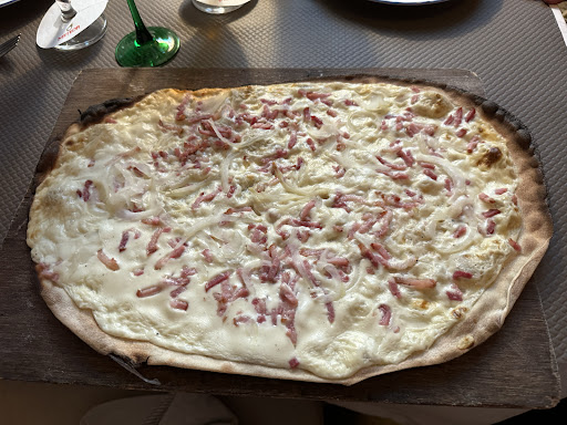Very friendly village restaurant, wide choice of tarte flambée between traditional and more original ones, as well as a good atmosphere! Very large sheltered terrace with often organized events. The nearby parking is a plus. I really like it!