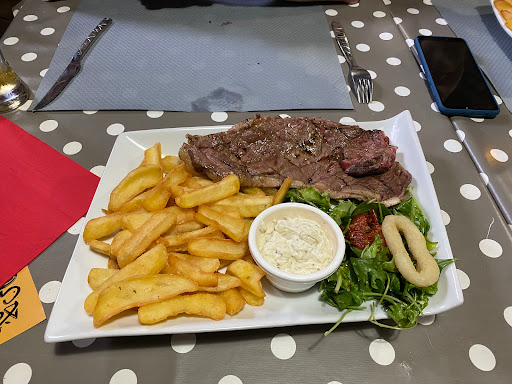 The sirloin steak was very good and flavorful, even though it was medium-rare instead of rare. The spices on top were delicious! The fries were very good, crispy, and not too greasy. The decor was cozy. The Morgane beer was excellent. 👌