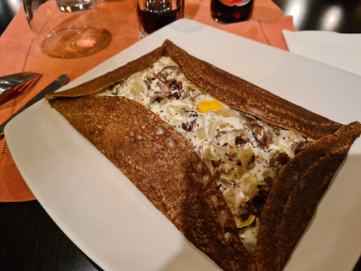 This creperie is a bit dull. Very cold waitress probably shy. Crêpes served correctly because the dough is homemade and very crispy. Disappointing toppings.