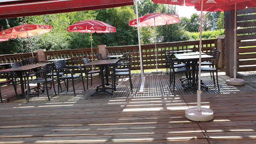Super nice break without leaving the highway where you can have your meal on the terrace at the edge of a small pond! Smiling and attentive staff and efficient cuisine.