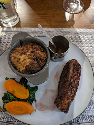 Everything was perfect: from the appetizer to the dessert! Cooking the piece of beef: great! Bravo to the cook who is alone in the kitchen. Attentive service. The wines were all very good. The terrace in summer is a big plus. We will come back quickly with our eyes closed