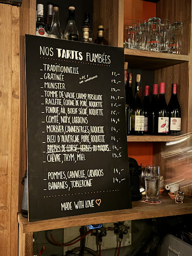 It's a bit cramped, but you keep warm (when there's space) and the welcome is cool and friendly. It's a welcome change from other, rather pretentious "tarte flambée" restaurants in town. The tarte flambée is obviously very good, with a special mention for the Munster cheese.