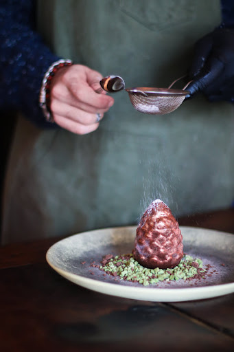 Inside, you're immersed in the bistro style of post-war Paris... The majestic wooden bar dominates the dining room, where the selection of tables and chairs in different styles transports you to 1950s/60s France...