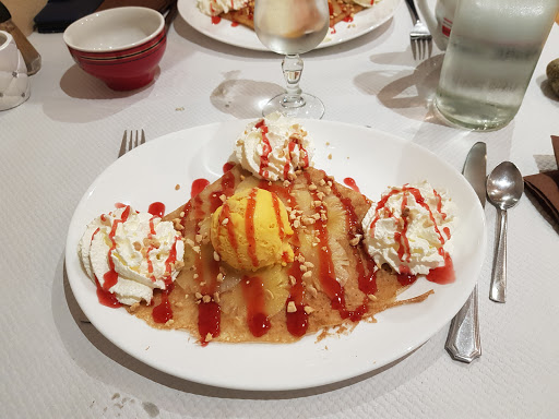 Nice setting, interesting menu, but I was disappointed with my pancake. I ordered the Texan, with ground beef, egg, onions, and I got all that, but placed on the crepe. It wasn't a ground beef pancake, but a ground steak with an egg and a pancake. The steak wasn't good, and the rest was flavorless. Even the pancake wasn't crispy. We'll see if I come back to try another pancake. The cider is good.