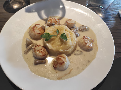 A great discovery of this restaurant dedicated to fish and seafood. The setting is pleasant. A big fan of mussels, I took the Roquefort mussels, which was a nice surprise. The mussels were really excellent and the sauce was delicious. I was honestly surprised by this nice surprise. The only downside remains the really light starters, two crispy shrimp which fight a duel and the service the waitress was very nice but I don't understand the principle of serving the aperitifs at the same time as the main courses