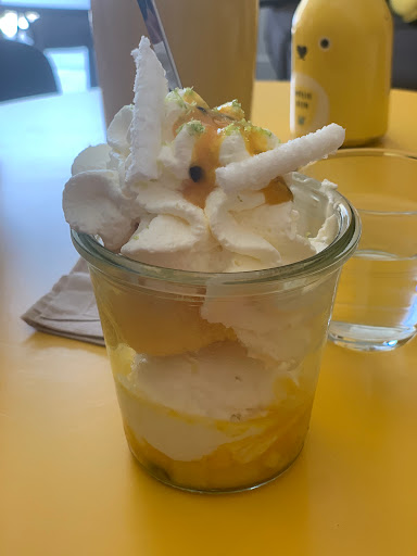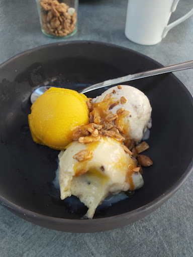 Delicious ice cream. Lots of whipped cream. Friendly staff. A bit too many chairs in the dining area, though.