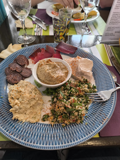 The salads lack seasoning, the beef is way overcooked, the mint tea is very light.