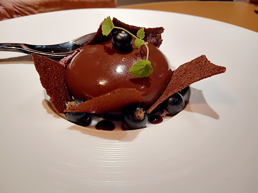 Alcuni piatti davvero eccellenti: il maiale arrosto con abbinamento di verdure e il dolce a base di cioccolato sifonato con una granita di erbe aromatiche davvero sublime.