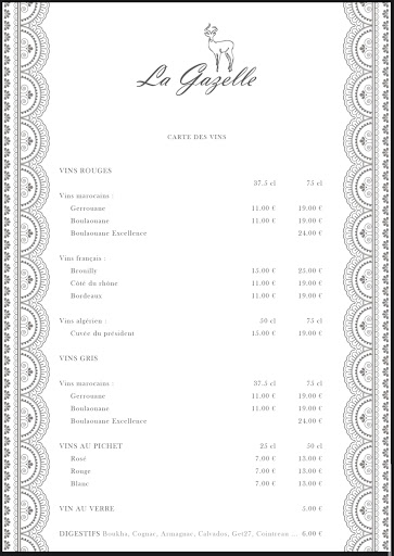 I arrived at La Gazelle restaurant on Thursday, November 6, 2025, at 9:20 PM. From the very first moment, I was captivated, transported to another world, a world of beauty and excellence. The wonder swept me away, carrying me to another universe. The welcome was exceptional, a haven of peace, a feast for the taste buds with couscous and exquisitely sweet and delicious cakes. The decor was old-fashioned, and the choice of decorations was on par with fine art. Here, the art of fine dining and hospitality is paramount. To serve you, I must say that charm, beauty, and excellence are the watchwords of this establishment, grandeur and poetry surrounded by soft background music that transports you and makes you dream. Thank you, and see you soon. It will be a pleasure to see you again. A thousand thanks for this wonderful evening. Signed, Serge. Serge. Visited November 6, 2025. And written on Saturday, November 8, 2025, at 9:25 a.m. Signed, Serge.