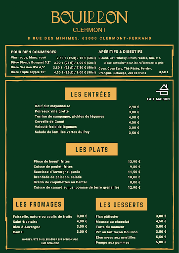 A wonderful evening, best enjoyed with a reservation. The decor is stylish and bright, the welcome and service are attentive, and the menu features a simple yet delicious Bouillon, offering excellent value for money. Add to that a superb Bougnat red ale. Highly recommended for a great start to an evening with family or friends.