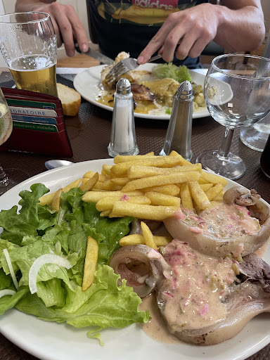 A nice surprise, this restaurant was found by chance, perfectly located on the way back from vacation with a large dedicated parking lot. A large room filled with locals, workers and tourists, but ultra-efficient service thanks to a single server who was a bit rushed but extremely organized and kind. Short menu of hearty and very good homemade dishes. We had: 3 pork roasts with an excellent thyme sauce + 1 chicken sausage duo, accompanied by potatoes and vegetables, and a children's menu of breaded chicken fillets and fries, and some good desserts to finish. Top quality/price ratio.