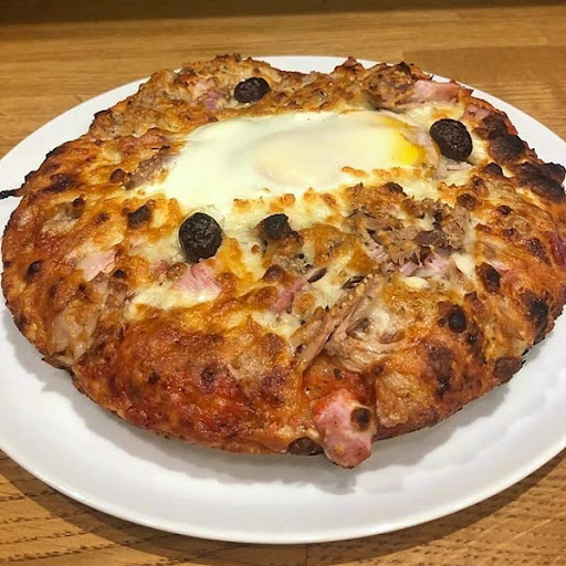 So, of course, the pizzas are small compared to other pizzerias, but it's the same thing because they make them in a small pan, which makes for a thick but light dough with generous and, above all, tasty toppings, which gives us a succulent pizza.
