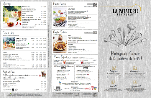 We came in groups... With the family, there were 5 of us and we were very well received. I thought it was an average restaurant chain, I didn't know La Pataterie.. But really surprised by the different potato menus😉 Several choices and Potato of the day👍 Menu to see for yourself.. Welcoming and professional place Despite the Max volume of our discussions at the table. Thank you Pataterie 😁