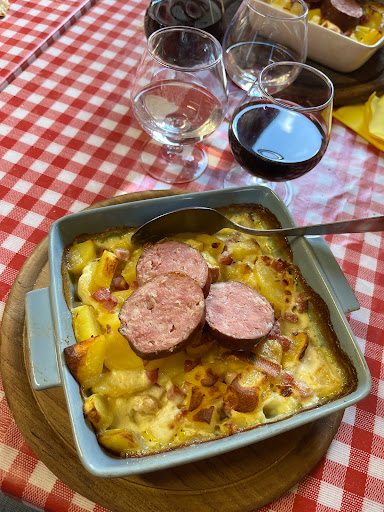 Meine Partnerin entschied sich für heisse Wurst mit Kartoffeln und Gemüse. Keine Industriewurst, sondern direkt vom Bauern. Meine Lasagne war französisch verfeinert ohne Hackfleisch. Delikat. Die Empfehlung für den Rotwein passte wunderbar. Wer die Verdauung fördern möchte sei der "Sapin-Digestif" empfohlen. Der Preis für ein Menu betrug 25€ und ist sehr moderat.