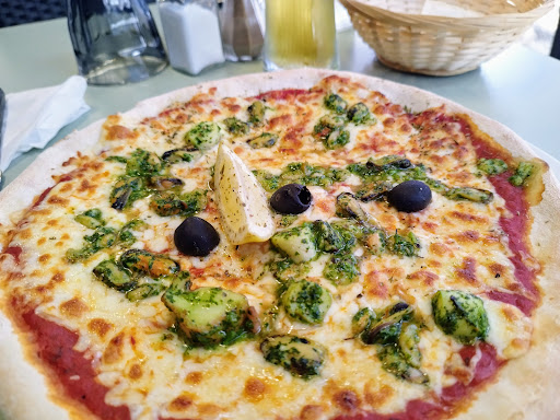 Canteen atmosphere, very noisy. Mussels with Roquefort cheese, not very interesting, fries lukewarm and not homemade. But very good pizza.