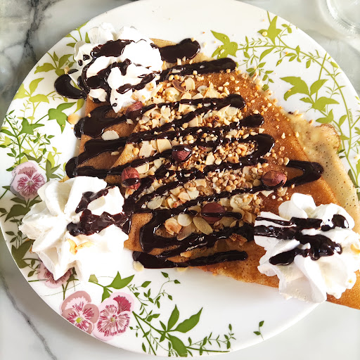 We were looking for a place to have crepes and happened upon this one with a terrace. The girl who served us was very friendly and kind and also spoke English. We ordered Nutella and banana crepes and another special one with almonds, chocolate, and nothing else. We preferred the plate crepe, but both were delicious. The service was quite fast.