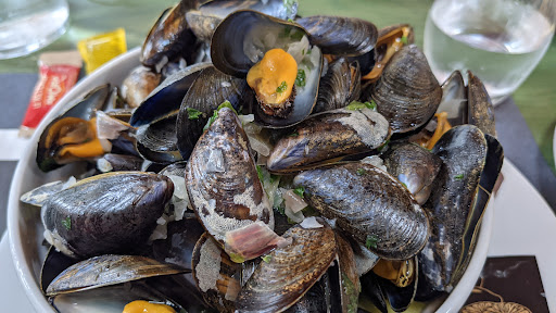 Wow, we thoroughly enjoyed their fish dishes. Flavorful oysters, tiny but delicious shrimp that still needed peeling (which the waitresses politely warned us about), and two very large buckets of delicious mussels.