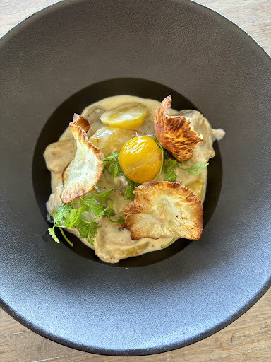 Lunch during the week. Reservation made for a group of 10 people. On the menu, bisque cream and prawns, hake fillet, gourmet cereals and pear/chocolate puff pastry. Good service, beautiful presentation and the taste buds were delighted