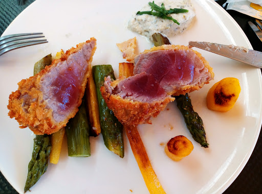 €25 for a medium-cooked tuna with almost no garnish is too expensive. Especially since the vegetables are cheap, so I find it even more regrettable. Granted, I didn't order the horseradish condiment, but that doesn't change the fact that the garnish was too small. Furthermore, the few vegetables on the plate weren't seasoned.