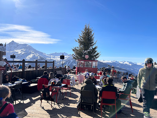 Spatial location: a breathtaking view and a beautiful terrace to admire it. Inside too, the place is very well kept and refined. Good food and surprisingly friendly staff. Perfect for a break from skiing in the sun.