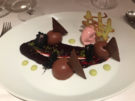 Beautiful cuisine: shortbread, seaweed tartare and mackerel fillet, pea cannelloni and foie gras, veal with vegetables, assortment of fish, tart and chocolate quenelle