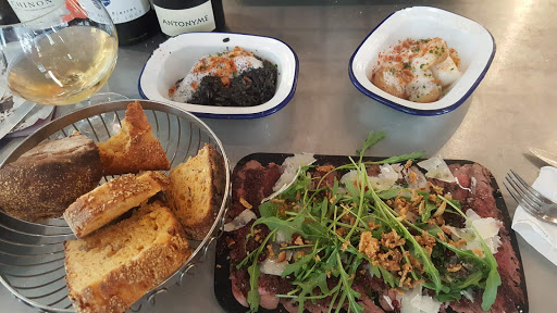 Nice place, very trendy and well-kept, with a few seats outside under the portico that surrounds the building. Choice of many small tapas style dishes, beautifully made and with very generous portions. The fried chicken and fois gras are excellent. Super nice and super friendly service. Absolutely correct account. Only suggestion: find a solution for the annoying pigeons that flutter on the tables.