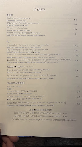 An almost, almost perfect lunch at the Bistrot au bord de l'eau in Levernois. Located less than 30 minutes by car from Dijon, the restaurant's setting is truly charming. It is located in the heart of a hotel with magnificent gardens and has a friendly decoration that puts you at ease upon arrival. In terms of cuisine, again almost faultless: the eggs meurette and pâté served as a starter were simply delicious and could have been reserved 4 times without it having bothered me. For the main courses, the risotto with seasonal vegetables and the beef chuck in Burgundian sauce were perfectly executed from cooking to seasoning. Let's talk about the cheeses: an impeccable selection of high quality which completed this already successful meal. The only downside for dessert was a pear-peanut finger, which I found too sweet and lacking in textures. Finally, the strong argument, the highlight of the show: An exceptional wine list allowed us to accompany the meal with elixirs of remarkable finesse, divine companions to the dishes served to us. All this could have ended with a total strike but unfortunately, the perfect meal does not exist.
