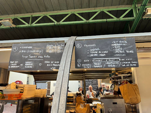 Best burger I ever had in france. Cheese, juicy, tasty, yum. The french fries comes with garlic taste sauce and it's amazing. The place has the most authentic parisien atmosphere, it's inside the food market. One of my best food experince in whole Europe, not just because of the food but the invirement.