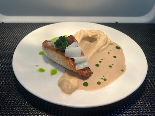 The frame is thin and refined. Thank you to the staff for their welcome and their good advice. Thanks to the chef for these beautiful but also delicious dishes. We enjoyed the dessert and especially mine with this little attention to me for my birthday.