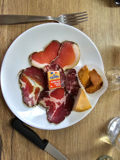 Molto gentili. Prodotti locali buonissimi… Hamburger stupendo! Piatto di affettati molto buono. Insomma. Comodo, bel parcheggio, nel posto, buon cibo e belle persone
