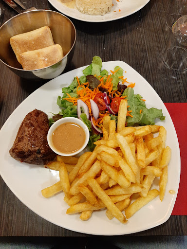 We had a wonderful meal here; we both had the €32 menu, which was really good! The cheese, ham, and mushroom appetizer was fantastic! The steak was just right, and the service was friendly.