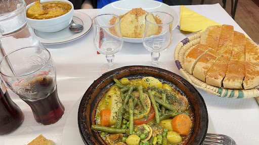 The restaurant is not very noisy, is super pretty and the waiters are friendly so it offers an excellent atmosphere I took a chicken olives lemon tagine, it was served very quickly and hot it is excellent it is faultless I adore !!!