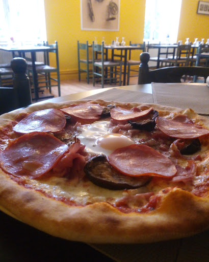 Thin pizza dough, very good value for money. A pleasure to sit on the terrace.