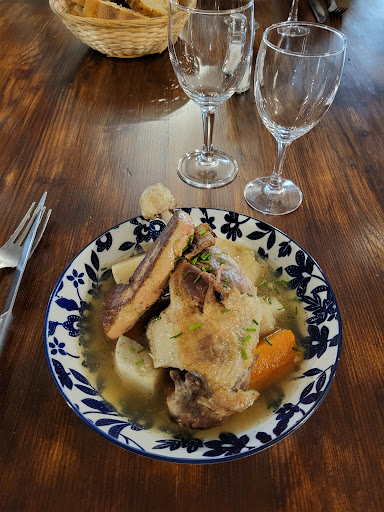 Friends recommended this restaurant in Roujan, recently taken over by a young couple. The menu at 29.50 is tempting, good mention for the roast St Marcellin, average for the duck pot au feu, because the small slice of pan-fried foie gras was still frozen to the core. The service is OK, why impose small tables for 2 people on couples when the restaurant was 3/4 empty? It was very cold this Friday evening in December, the air conditioners seemed to be running on ventilation mode...