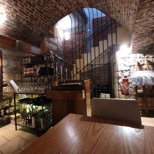 We ate in the vaulted cellar dining room. The food was homemade, but the service needs improvement. Wine was served at the end of the meal, and the waiter didn't know the ingredients of the cocktails and was rather cold. However, the food was very good.